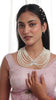 This exquisite jewelry set features a statement multi-layered pearl choker, gracefully draping in a fan-like cascade for a regal look ,adding just the right amount of sparkle. The set is complemented by sleek drop earrings ensuring a harmonious and luxurious ensemble.