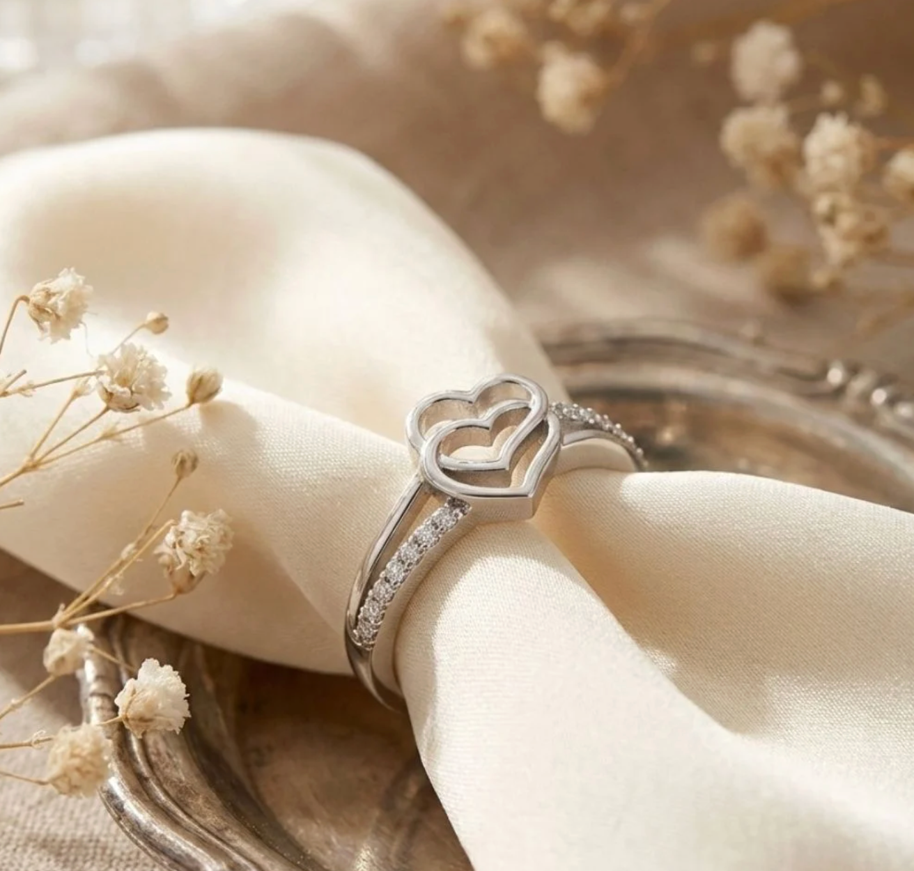 Ask about Anoree Twin Heart Sparkle Adjustable Ring