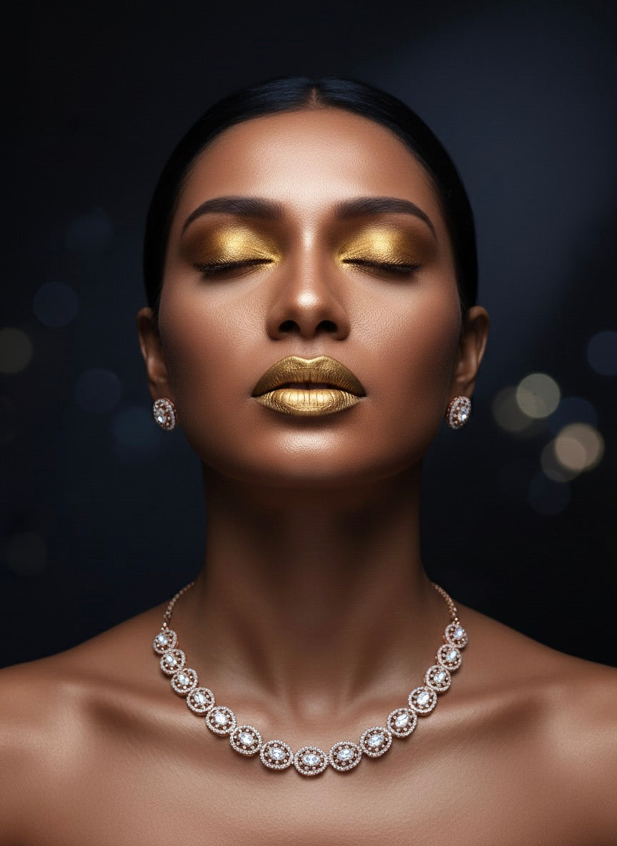 Made by our most experienced karigars, this moissanite set gives you that real-jewellery sparkle with gold polish and fine, detailed workmanship.